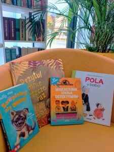 Na zdjęciu książki dla dzieci pt.: „Zaopiekuj się mną”, „Przytul mnie jeszcze raz”, „Pola u babci” i „Wakacyjna szkoła detektywów” /fot. E.M