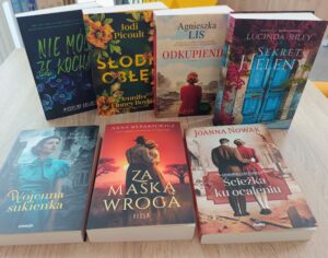 Na zdjęciu książki pt.:„Nie mów, że kochasz”, „Słodki obłęd”, „Odkupienie”, „Sekret Heleny”, „Wojenna sukienka” , „Za maską wroga”, „Ścieżka ku ocaleniu”/fot. E.M