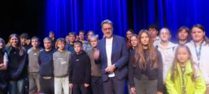 Na zdjęciu uczniowie szkół podstawowych gminy Tuliszków i Michał Rusinek/ fot.M.A