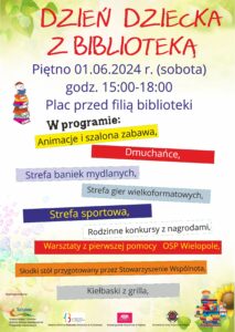 W programie mnóstwo atrakcji między innymi animacje, dmuchańce, strefa baniek mydlanych, strefa gier wielkoformatowych, konkursy z nagrodami, spotkanie ze strażą pożarną.